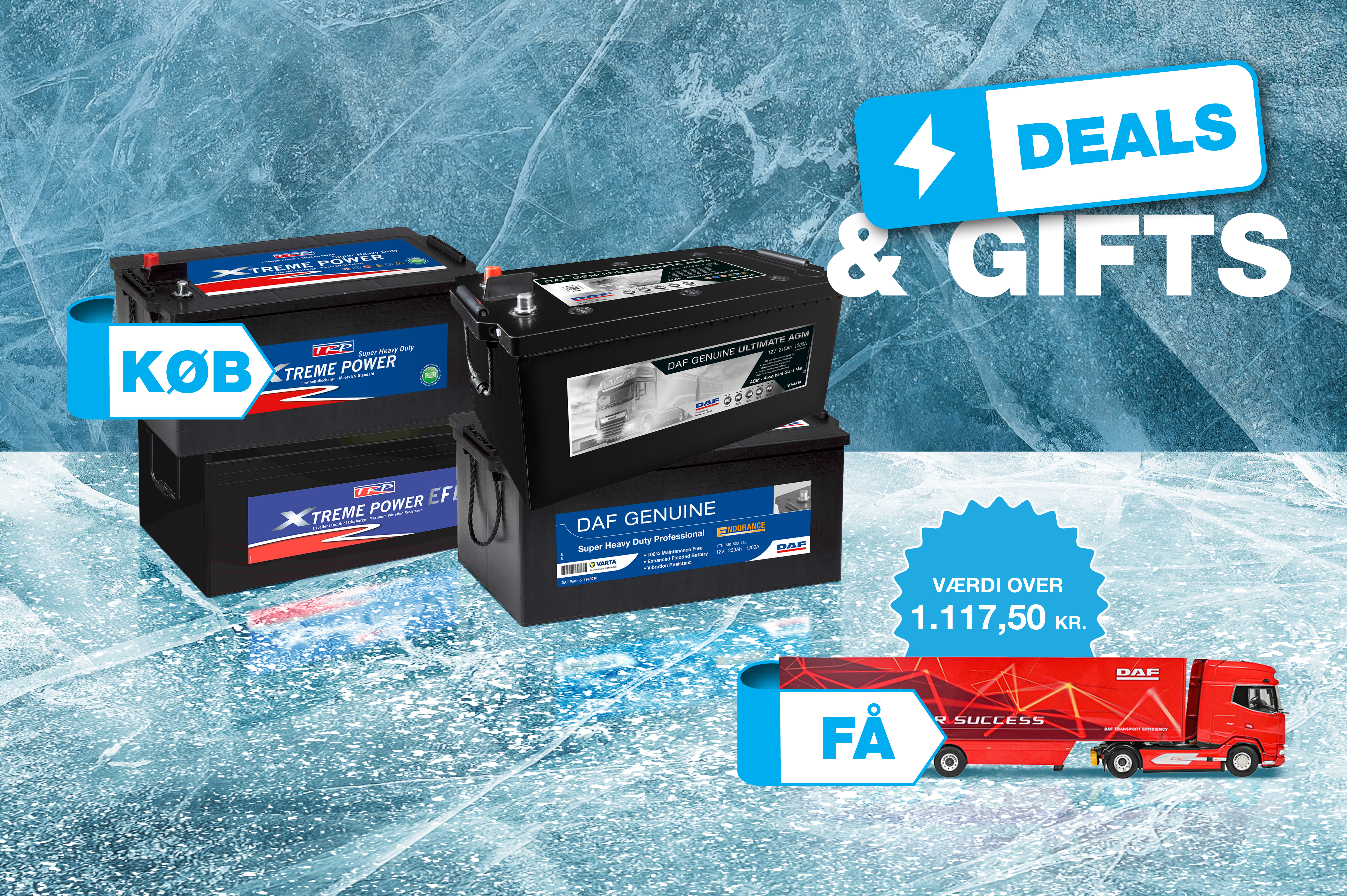 Bestil minimum 12 batterier i et enkelt køb via DAF webshoppen i oktober og november, og få en gratis DAF XG+ 1:50 miniaturelastbil til en værdi af over €150!
