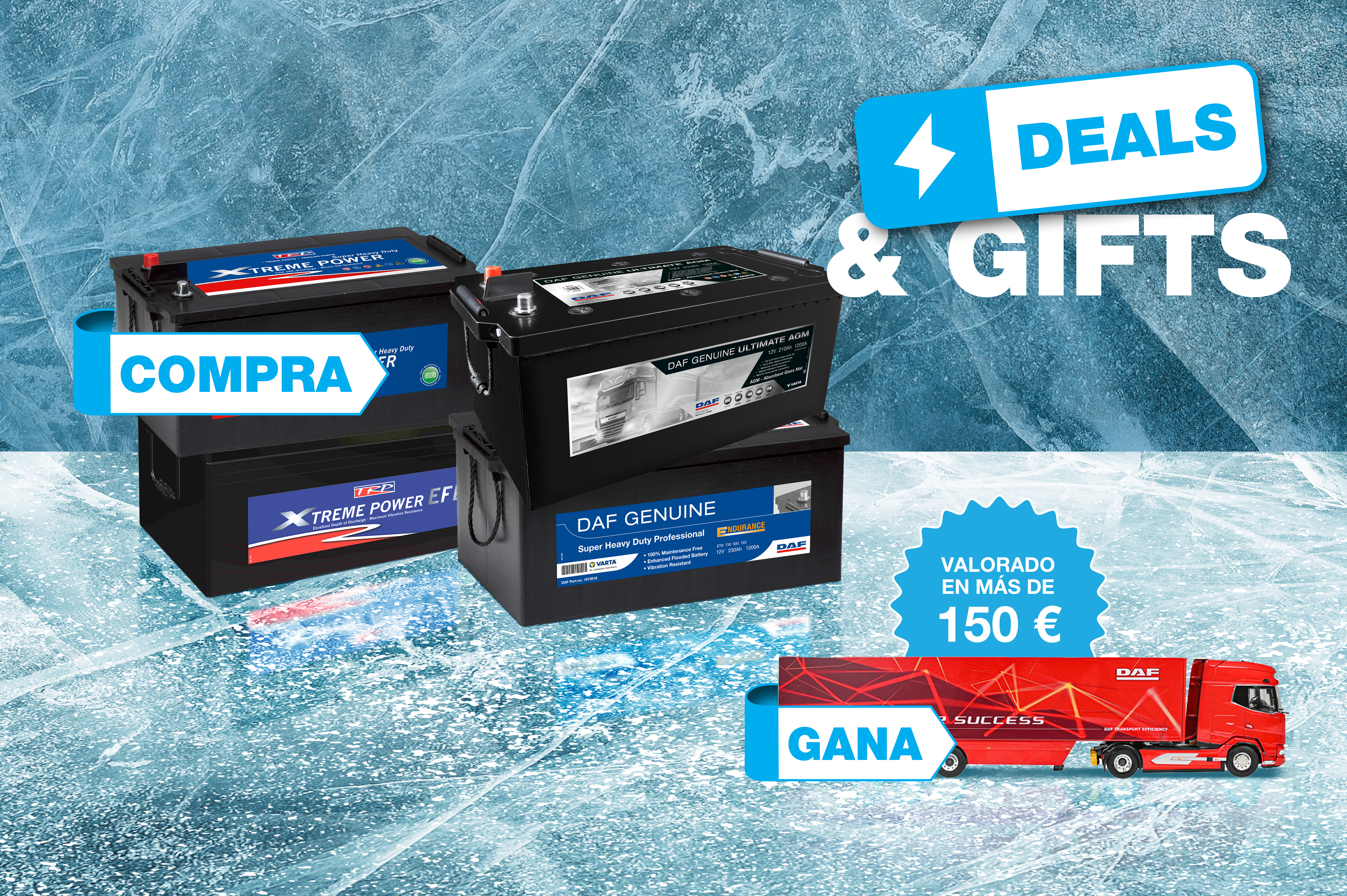 Haga un pedido de un mínimo de 12 baterías en una única compra a través de la tienda online DAF en octubre y noviembre, y recibirá un camión DAF XG+ en miniatura a escala 1:50 valorado en más de €150 €.