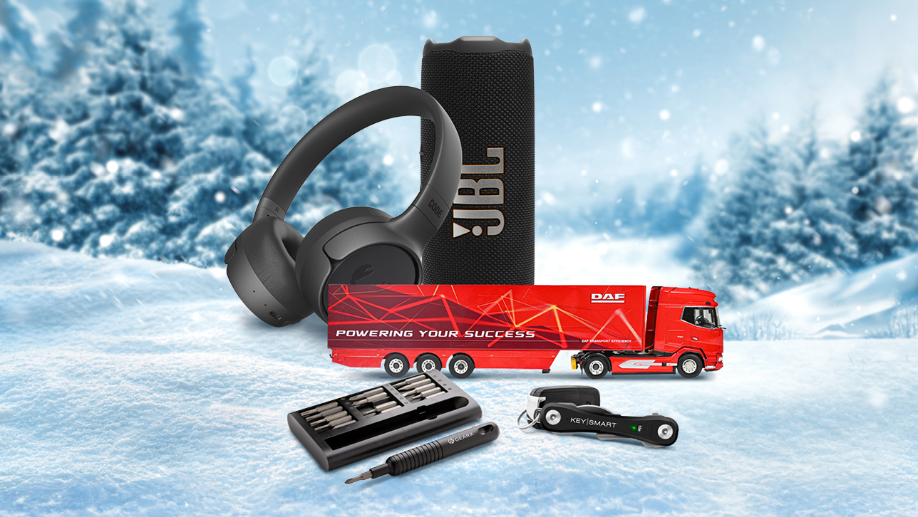 Durante la promoción "Hot Deals, Cool Gifts", cada categoría de producto seleccionada en la tienda online DAF desbloquea una recompensa específica si su pedido alcanza el gasto mínimo requerido en una sola transacción.
