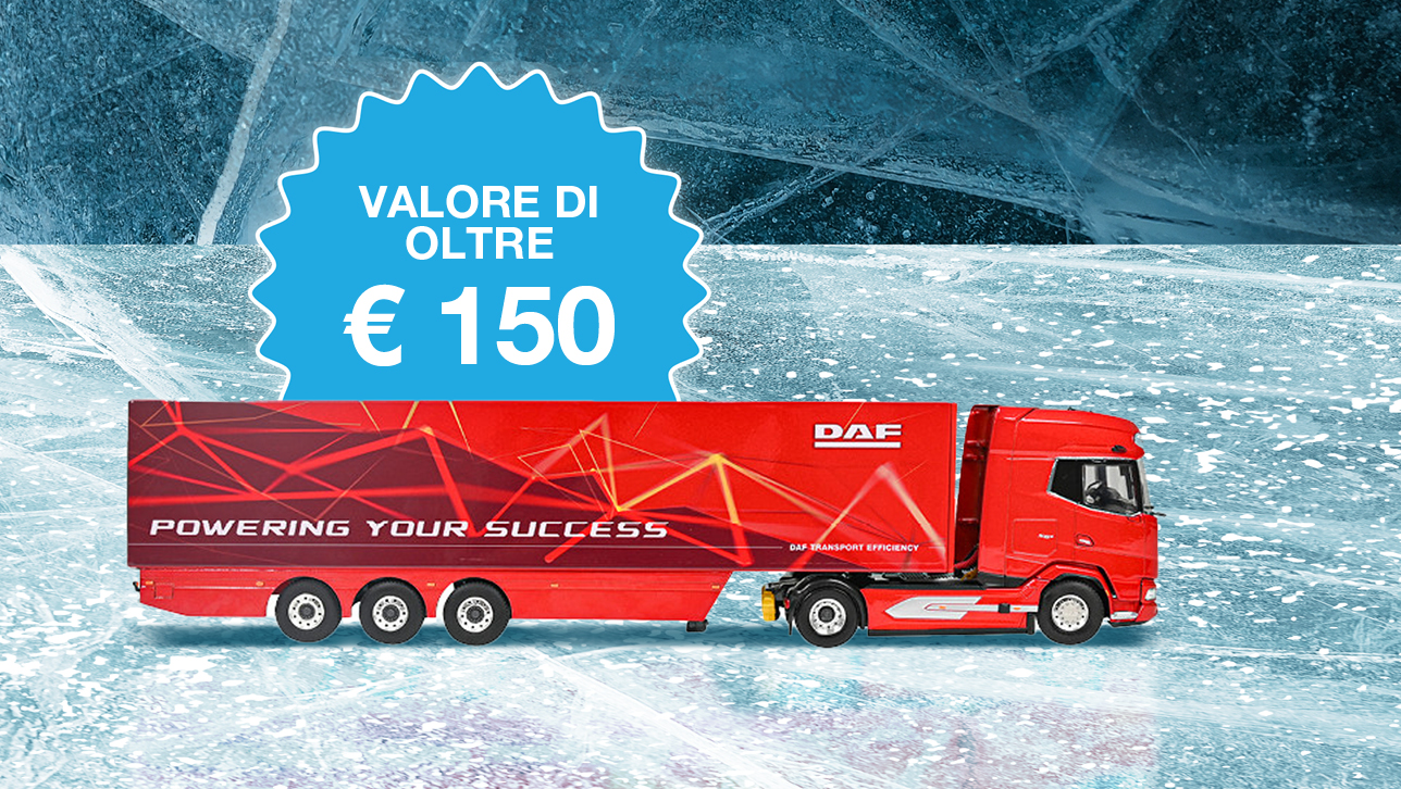 Con l'acquisto di almeno 12 batterie selezionate in un unico ordine, riceverai una riproduzione in miniatura del veicolo DAF XG+ 1:50 del valore di oltre €150. In questo modo potrai prepararti per l'inverno. Poiché con l'arrivo delle temperature più basse, una batteria affidabile mantiene i veicoli su strada.